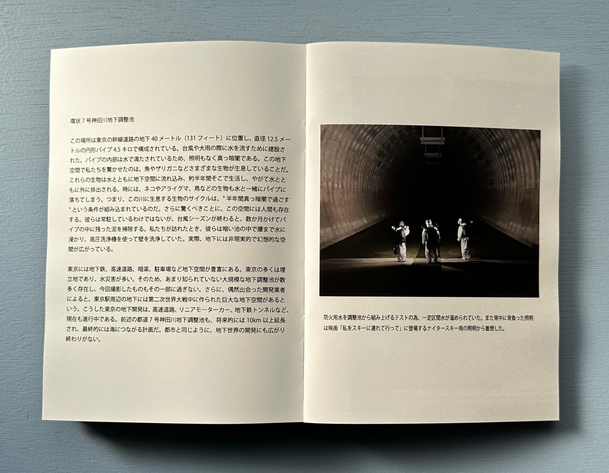 <under city>は普段人が立ち入ることが少ない巨大な地下調整池や使われていない浄水施設、地下鉄の廃駅などいまだに謎に包まれている都市の地下空間をスケーター達が滑走していく様子を映像撮影し、編集によって異なる空間同士を接続し、一つの「仮想的な地下都市」を作り出すという内容の映像作品で、制作の為に収集した資料や記録写真、屋外で展示した様子が収録されています。